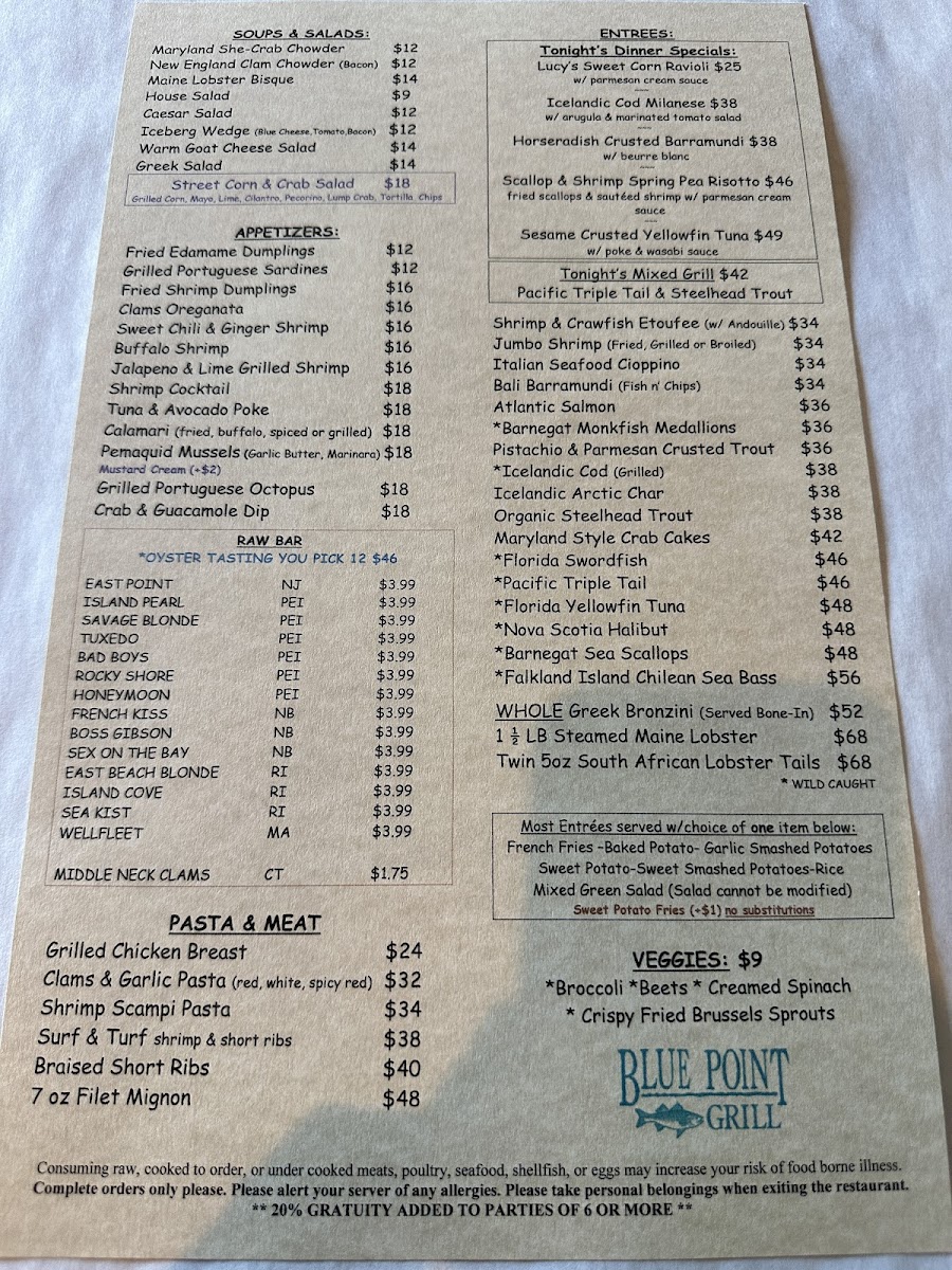 Looking for fresh seafood with a local twist? The Blue Point Grill Menu has something to satisfy every craving. Located in the heart of Princeton, NJ, this seafood gem offers a variety of dishes that highlight the best of both land and sea. From perfectly seared fish to succulent shellfish, every item is crafted with quality ingredients and a keen attention to flavor. The menu also features a great selection of sides, sauces, and seasonal specials, so there's always something new to try. Whether you're in the mood for a light bite or a hearty meal, the Blue Point Grill has you covered.